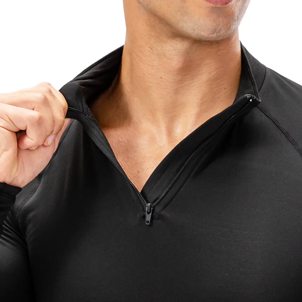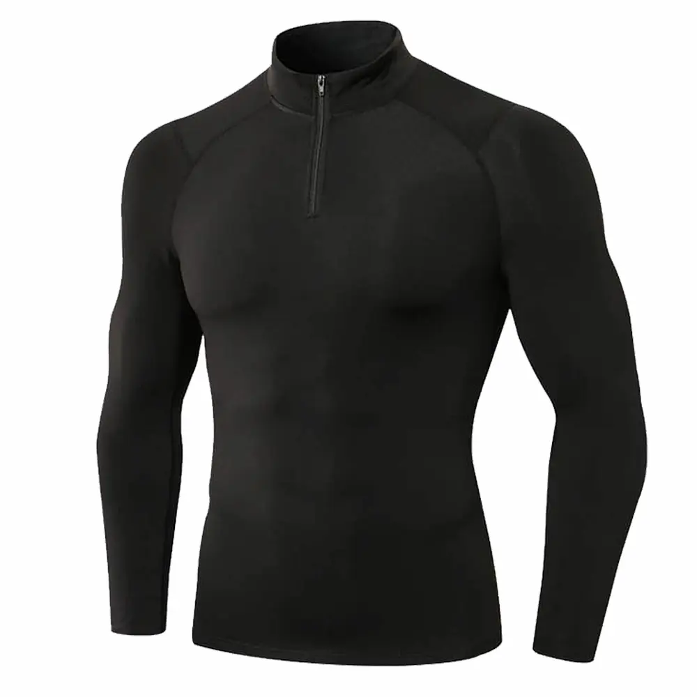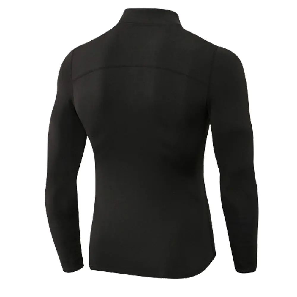 Облягаюча кофта чорного кольору з коміром-стійкою та короткою блискавкою для зручного одягання. Зручний крій та еластична тканина забезпечують свободу рухів, а комір захищає від вітру та холоду.