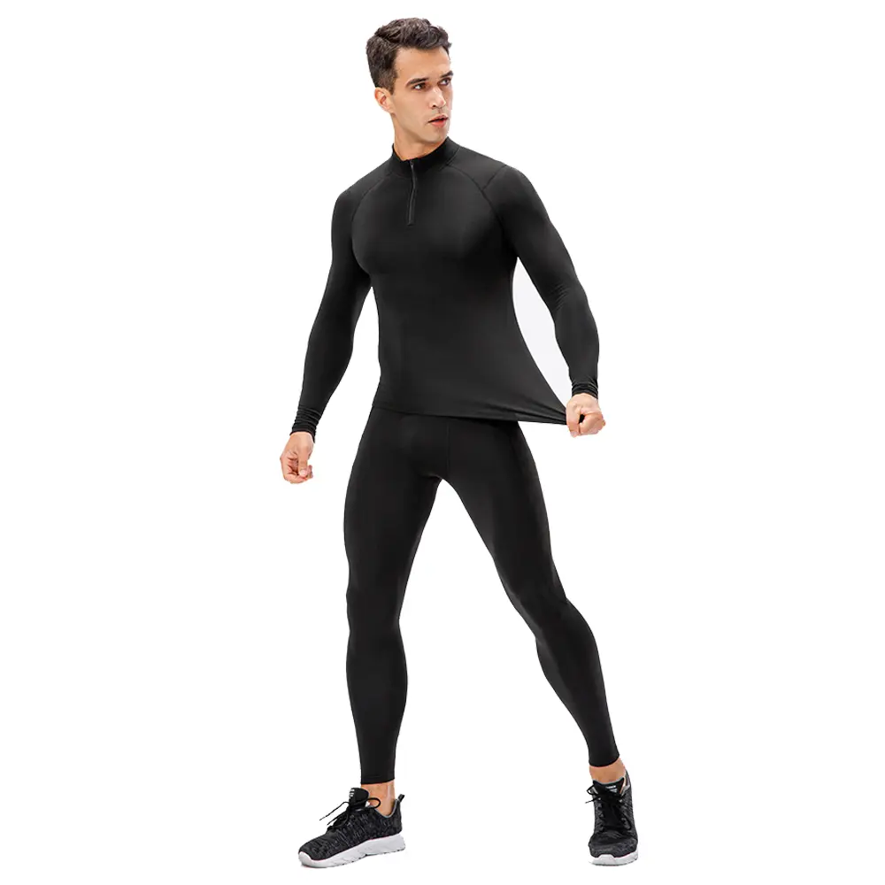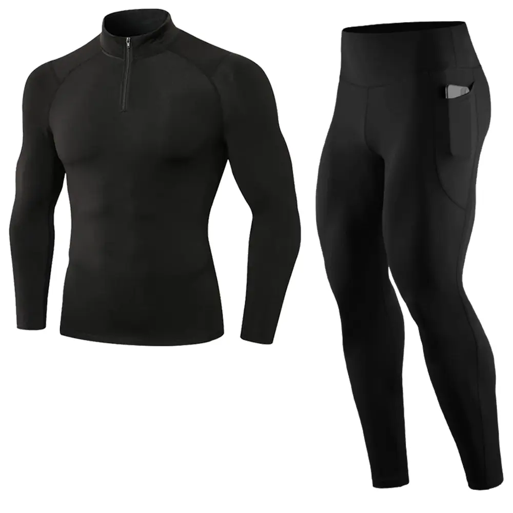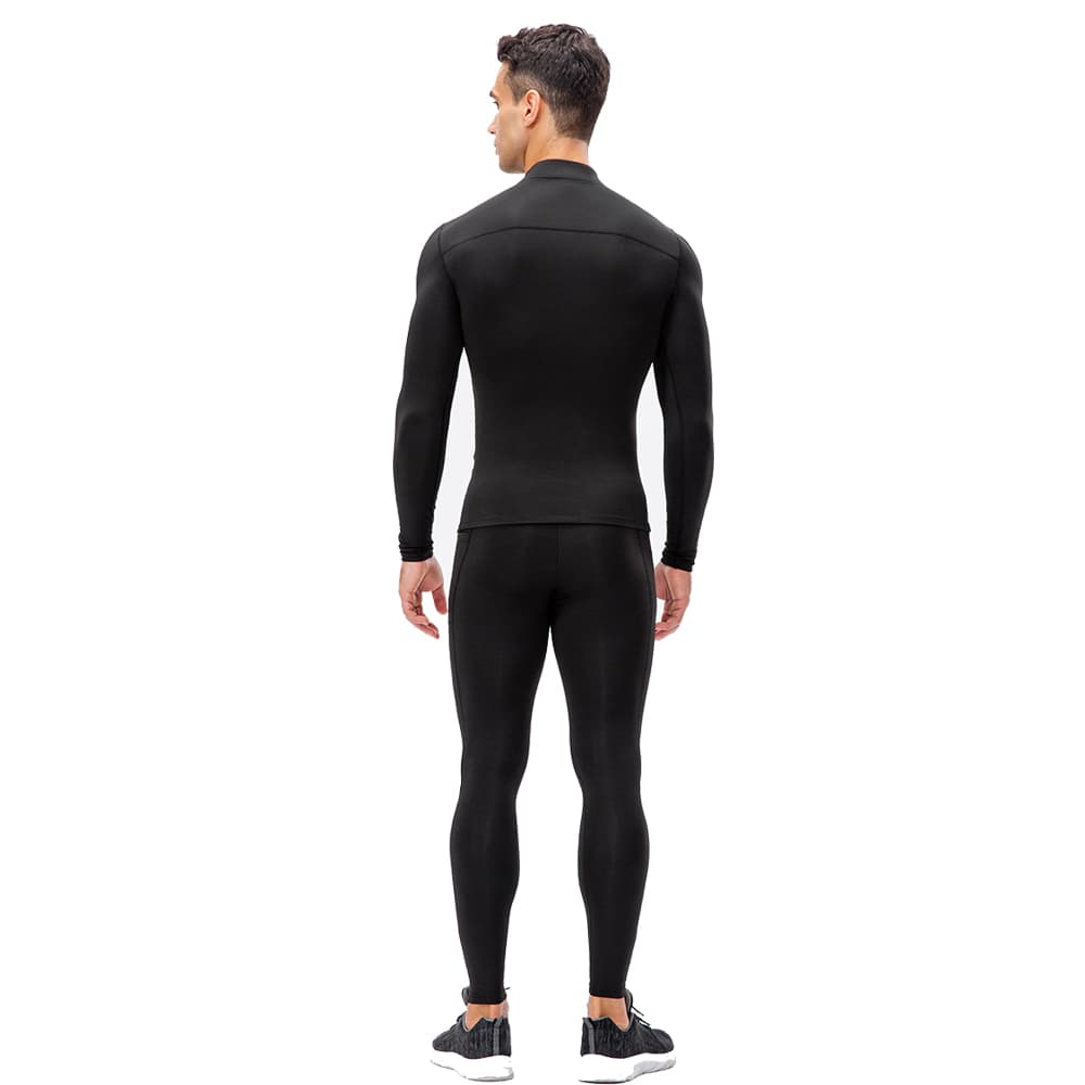 Чоловічий компресійний костюм CROSSMAN чорного кольору для активних тренувань на вулиці взимку. Цей комплект поєднує стильний дизайн, комфорт та функціональність, забезпечуючи підтримку м’язів і тепло навіть у мороз.