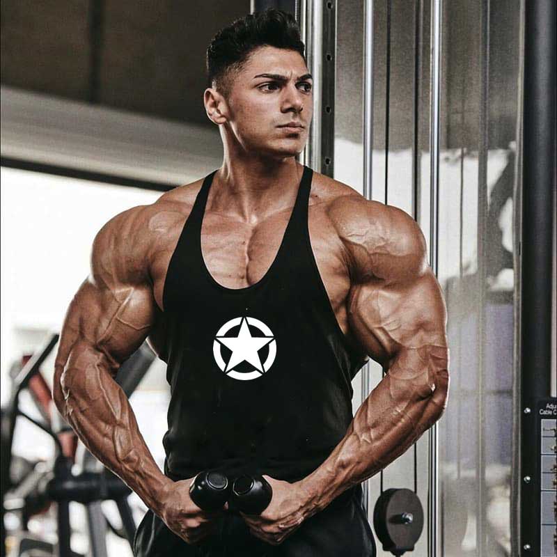 Майка чоловіча спортивна чорна STAR з білим логотипом поєднує стиль і комфорт, ідеально підходить для тренувань та активного способу життя. Виготовлена з натуральної бавовни із додаванням спандексу, вона забезпечує свободу рухів та приємні відчуття на шкірі.