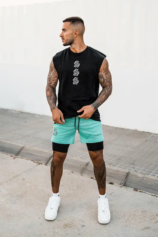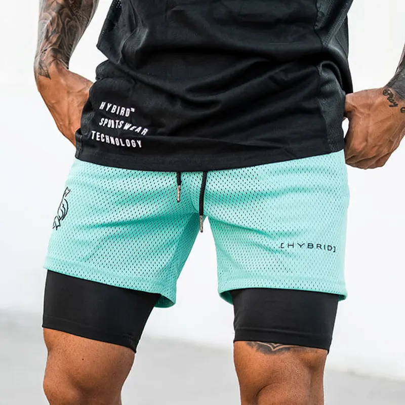 Шорти спортивні чоловічі двошарові HYBRID бірюзові – ідеальне поєднання стилю, комфорту та функціональності. Ці двошарові шорти розроблені для активних чоловіків, які цінують високу якість і зручність під час тренувань. Верхня частина виконана з перфорованої тканини, що забезпечує відмінну вентиляцію, а внутрішній шар з облягаючої тканини гарантує підтримку і комфорт.