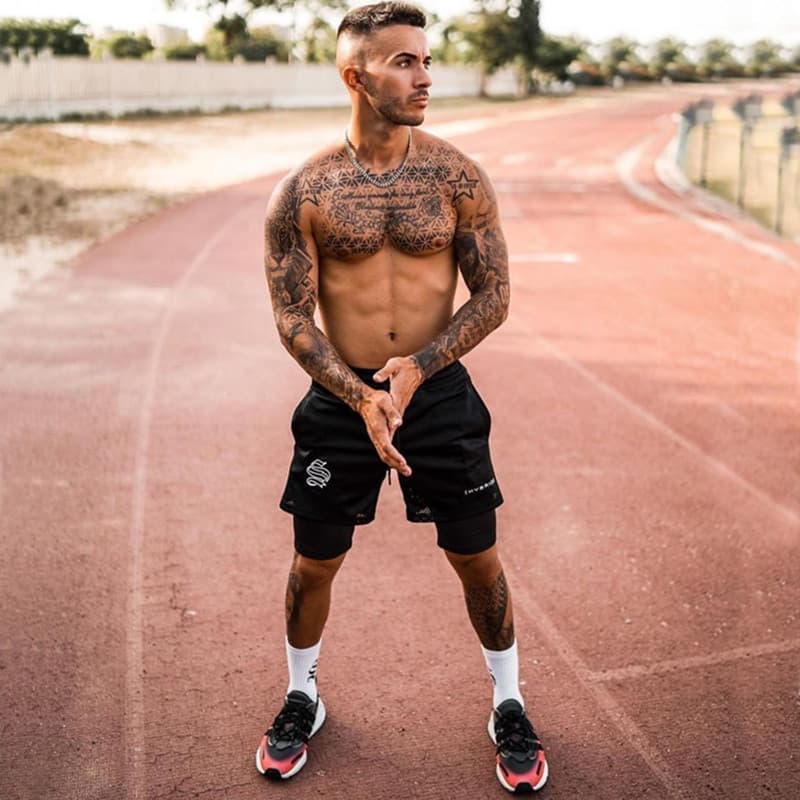 - Двошаровий дизайн: Зовнішній шар шортів виготовлений з перфорованої тканини чорного кольору, яка забезпечує чудову циркуляцію повітря і запобігає перегріву. Внутрішній шар з облягаючої тканини щільно прилягає до тіла, забезпечуючи підтримку і свободу рухів.