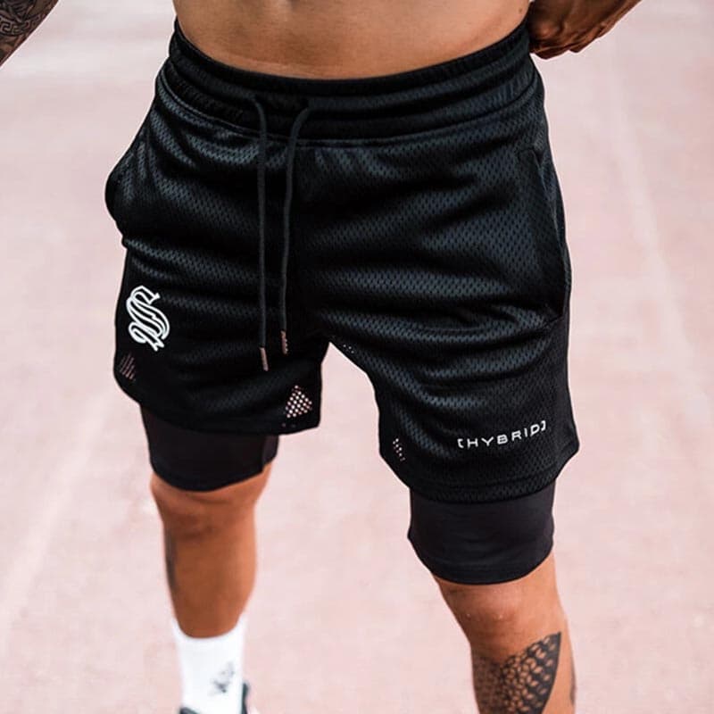 Шорти спортивні чоловічі двошарові HYBRID – ідеальне поєднання стилю, комфорту та функціональності. Ці двошарові шорти розроблені для активних чоловіків, які цінують високу якість і зручність під час тренувань. Верхня частина виконана з перфорованої тканини, що забезпечує відмінну вентиляцію, а внутрішній шар з облягаючої тканини гарантує підтримку і комфорт.