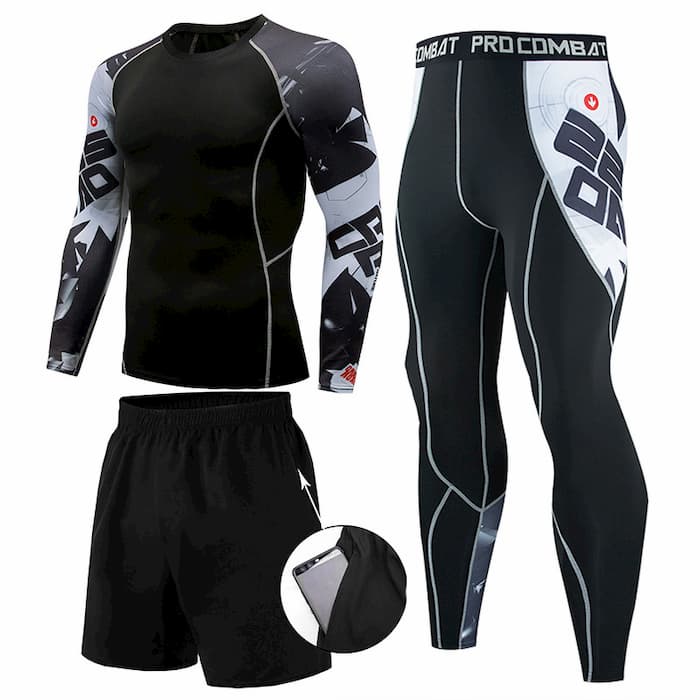 В комплект входять: рашгард, тайтси чорного кольору c білими вставками на рукавах та бедрах, та шорти чорного кольору. Костюм спортивний CrossRoad розроблений із застосуванням інноваційних технологій для максимального комфорту та ефективності під час тренувань. Костюм ідеально підходить для занять бігом, фітнесом, йогою, кросфітом, єдиноборствами та іншими видами спорту.