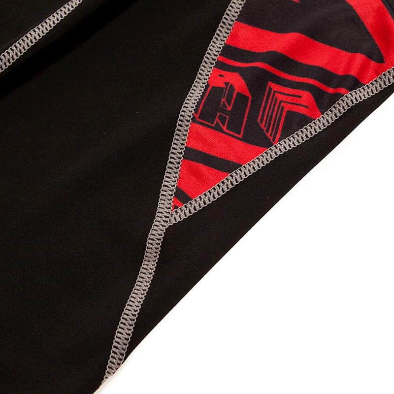 Рашгард чорного кольору з принтом червоного кольору на рукавах. Тайтси з широким поясом, також чорного кольору, с принтом червоного кольору на бедрах та голені. Та чорні шорти. Костюм спортивний RedPower розроблений із застосуванням інноваційних технологій для максимального комфорту та ефективності під час тренувань. Костюм ідеально підходить для занять бігом, фітнесом, йогою, кросфітом, єдиноборствами та іншими видами спорту.