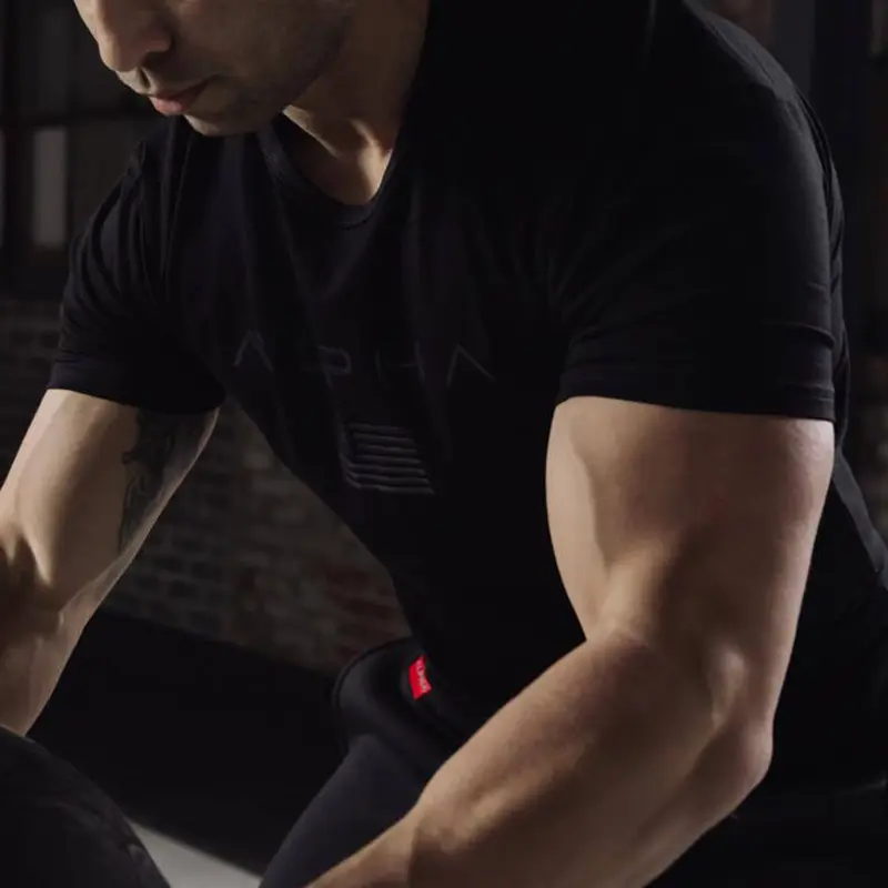 Футболка чоловіча ALPHA чорного кольору відзначається високою якістю та комфортом завдяки поєднанню натуральної бавовни та спандексу. На грудях футболки розміщен логотип “ALPHA” з американським прапором також чорного кольору, що додає їй унікального вигляду та підкреслює ваш смак.