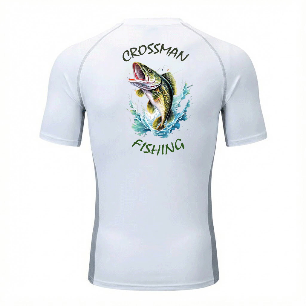 Футболка спортивна чоловіча Crossman Fishing з тканини з легким компресійним ефектом, білого кольору з сірими вставками з боків та зображенням щуки на спині, стане чудовим вибором для будь-якого любителя активного відпочинку. Виготовлена з високоякісних матеріалів, вона забезпечує максимальний комфорт під час тренувань та довговічність в користуванні навіть при частому пранні.