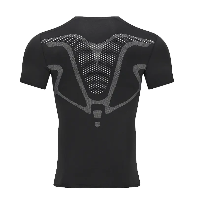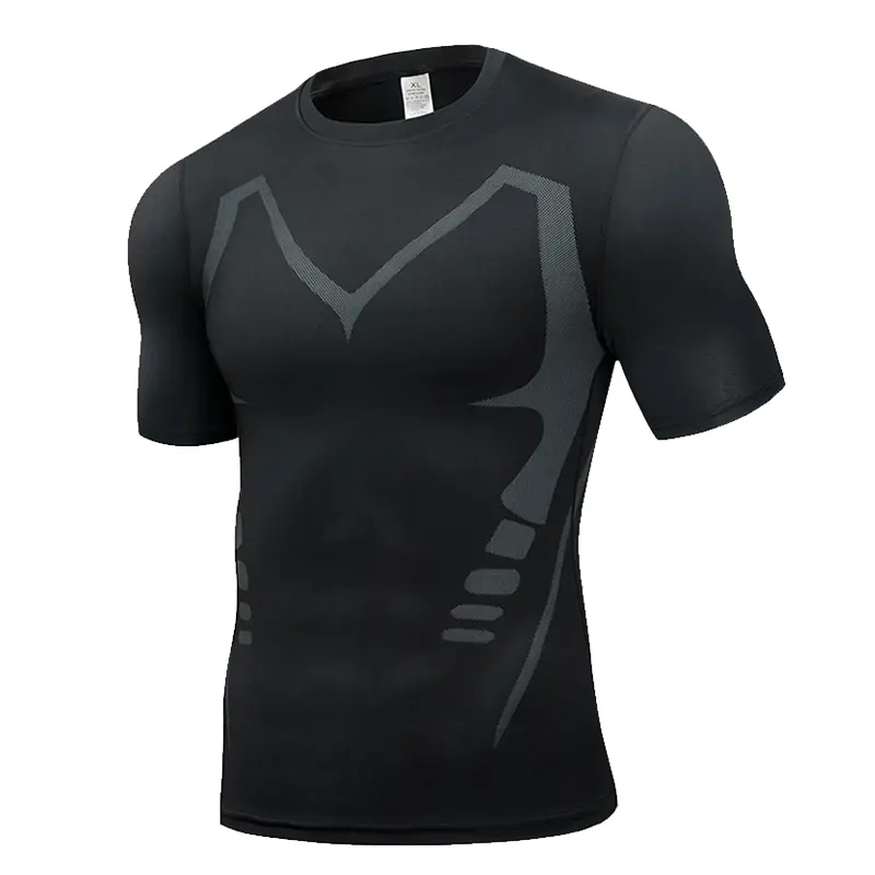 Футболка спортивна чоловіча Muscle Man з тканини з легким компресійним ефектом, чорного кольору з сірим принтом на грудях і спині, який підкреслює атлетичну форму, стане чудовим вибором для будь-якого спортсмена. Виготовлена з високоякісних матеріалів, вона забезпечує максимальний комфорт під час тренувань та довговічність в користуванні навіть при частому пранні.
