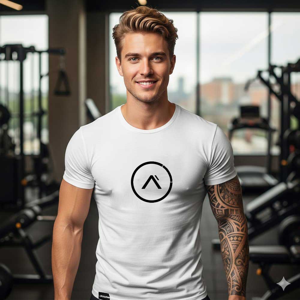Футболка чоловіча ALPHA білого кольору, приталений крій (Slim Fit), відзначається високою якістю та комфортом завдяки поєднанню натуральної бавовни та спандексу. На грудях футболки розміщен стилізований логотип ALPHA чорного кольору, що додає їй унікального вигляду та підкреслює ваш смак.